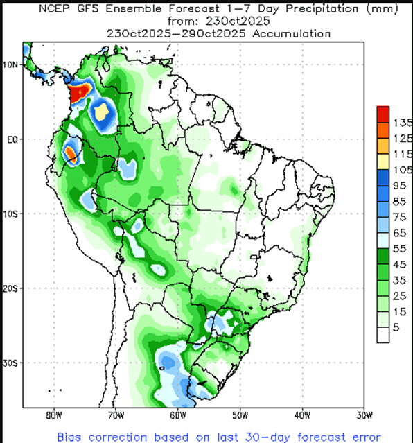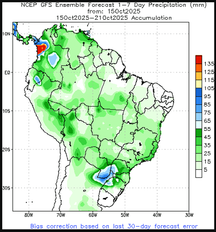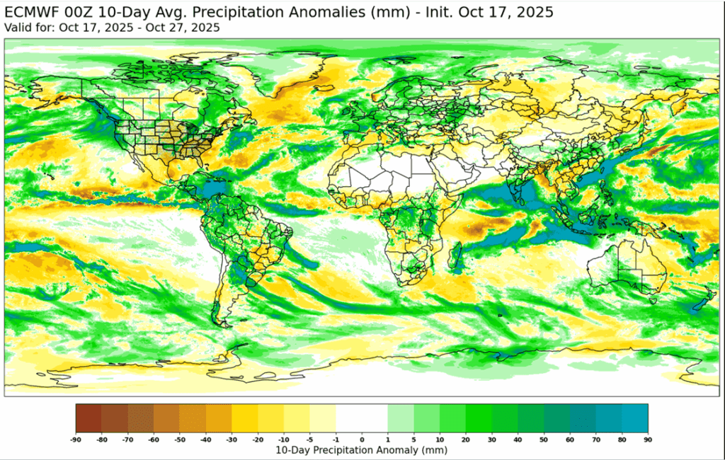 - One private estimate has pegged China’s 26/27 wheat production at 141 mmt, with planted area steady with the prior season at 23.62 million hectares. Winter wheat in China is typically planted between September and November, but the planting pace has been delayed due to heavy rains in October.