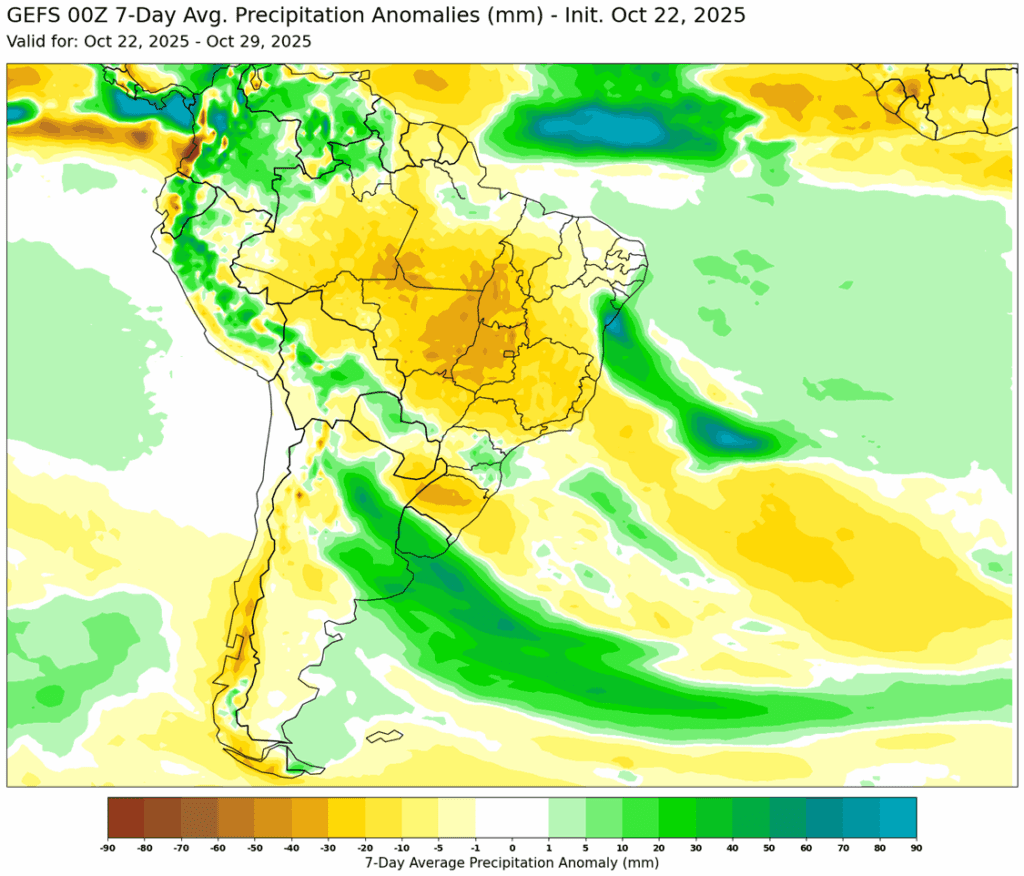 - In Brazil, soybean crushing is expected to hit a record high of 177 mmt for 25/26 according to Rabobank, which would be up 3% year to year. Brazilian planted soybean area is estimated at 48.8 million hectares, which would be up 2% from the previous year.