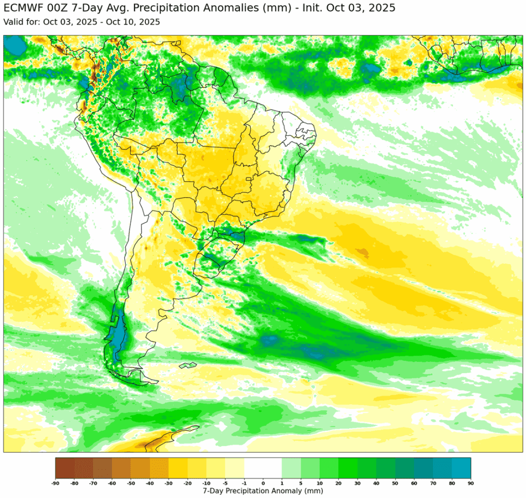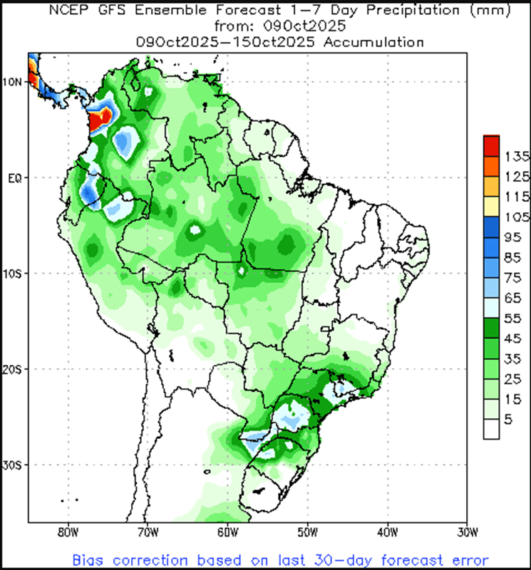 - In Brazil, soybean planting is reportedly 14% complete as of October 9, according to AgRural. This would compare to 9% last week and 8% at this time last year. This is the third fastest planting pace for the country on record for this time of year.