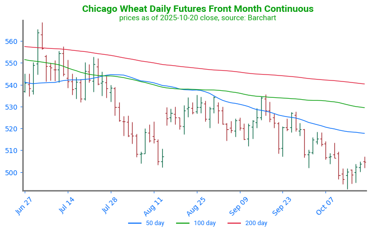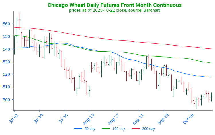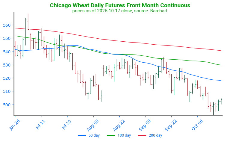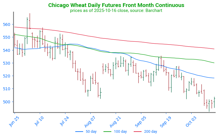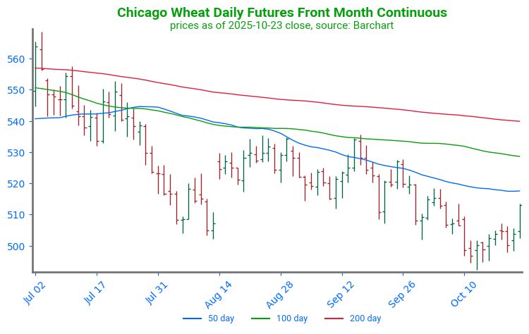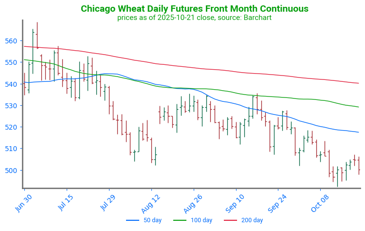 Chicago Wheat Breaks Higher: Wheat futures broke through key technical resistance at the 100-day moving average. The 100-day moving average had previously capped any price rallies since late July. With the 100-day moving average now serving as support, the first point of technical resistance can be found at the 200-day moving average, near 539.