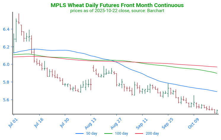 - Estimates for wheat export sales for the week ending October 23 are in a range between 350k and 900k tons with an average guess of 613k tons. This would compare to 411k tons last year.